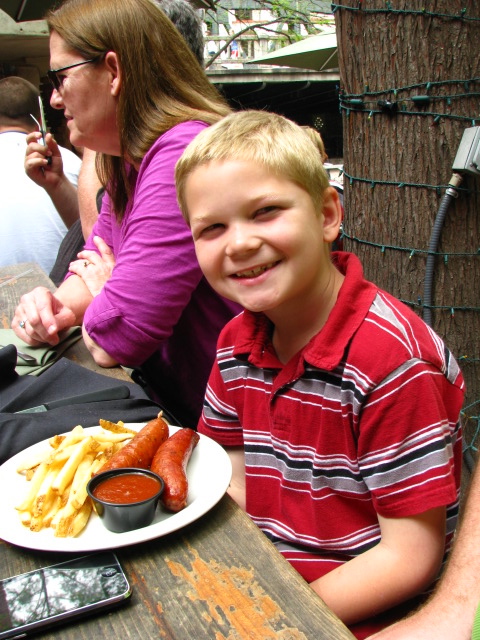 I enjoyed beef brisket, while Jon licked his fingers after delicious ribs. The kids had a pretty good plate also.